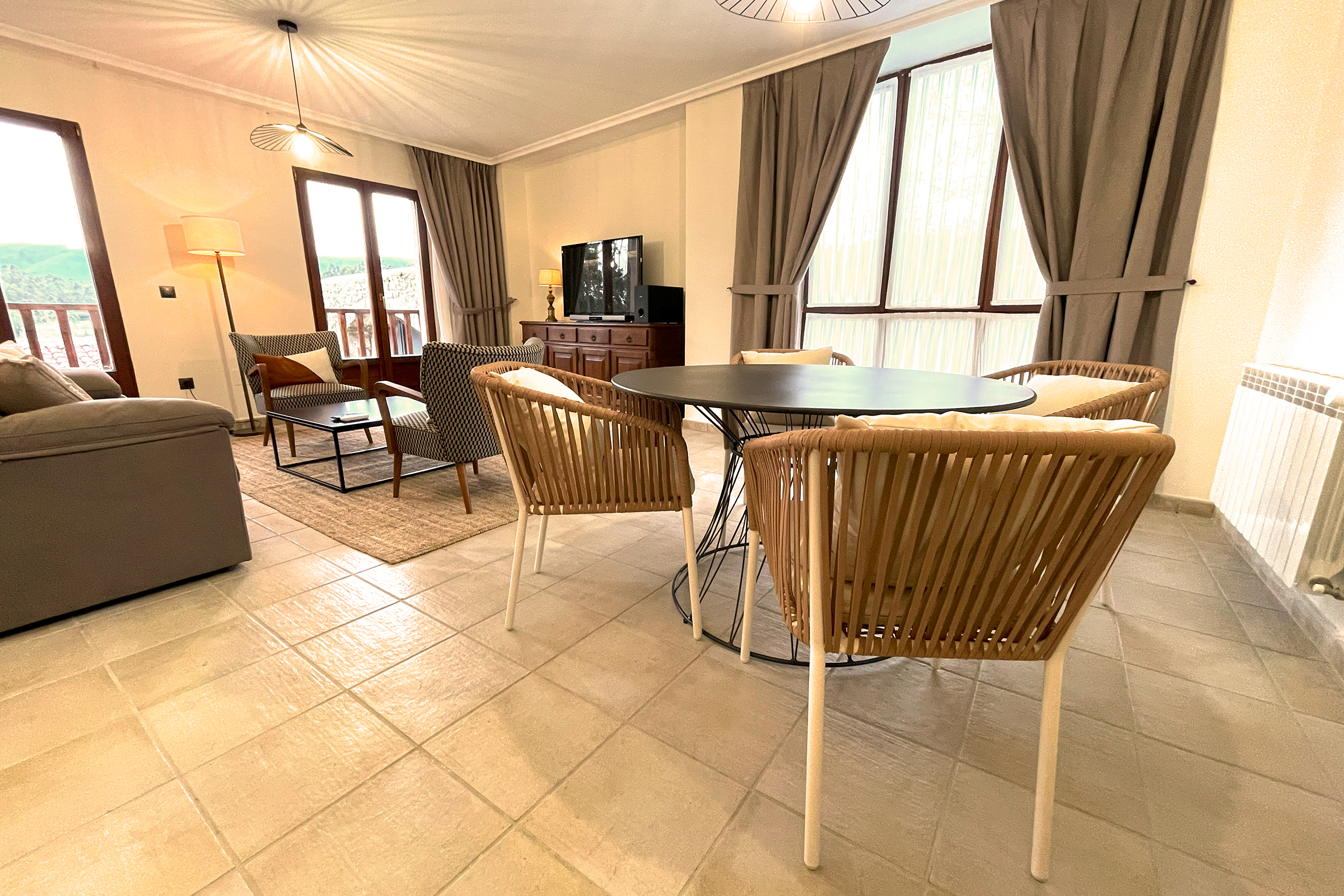 La Casa del Valle es una opción acogedora y moderna, perfecta para parejas o familias pequeñas. Este chalé adosado de 2 plantas, totalmente reformado, combina a la perfección diseño contemporáneo y comodidad. Con capacidad para 6 personas, dispone de 2 habitaciones: una con cama matrimonial y otra con 2 camas individuales, adaptándose a diferentes necesidades.